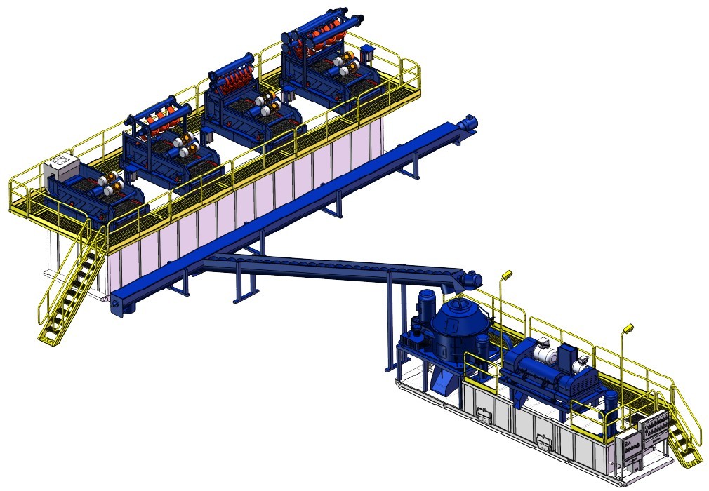 鉆井廢棄物處理系統(tǒng)又被稱作泥漿不落地系統(tǒng)、隨鉆泥漿不落地處理系統(tǒng),按照用途又分為:水基泥漿不落地系統(tǒng)和油基泥漿不落地系統(tǒng)。 北鉆固控油基泥漿不落地系統(tǒng)處理過程:待處理的鉆井液泥漿被輸送到鉆屑干燥機上,處理后的鉆井液泥漿輸送到鉆井液離心機中進一步處理,鉆井液離心機處理完畢后的泥漿液體被重新注入到泥漿循環(huán)系統(tǒng)中,處理后的固相廢棄物被運送到巖屑箱中。 北鉆固控油基泥漿不落地系統(tǒng)的設備主要包括:鉆屑干燥機、臥螺離心機、螺桿泵、螺旋輸送機、巖屑箱等。 油基泥漿不落地系統(tǒng)的典型布置及處理流程如下: 北鉆固控水基泥漿不落地處理過程:待處理的泥漿通過管匯輸送到高頻干燥振動篩上處理,處理后的泥漿鉆井液通過螺桿泵進入巖屑離心機,進一步處理,處理后的泥漿進入泥漿罐攪拌再一次注入到泥漿循環(huán)系統(tǒng)中。處理過程中留下來的廢棄物通過螺旋輸送機輸送到巖屑箱中拖出場地進行掩埋或者其它處理。 北鉆固控水基鉆井液泥漿不落地系統(tǒng)的設備主要包括:高頻干燥振動篩、臥螺離心機、螺桿泵、螺旋輸送機、泥漿罐和巖屑箱等。 北鉆固控是一家專業(yè)的鉆井廢棄物泥漿不落地處理系統(tǒng)的生產廠家,歡迎廣大客戶來電咨詢鉆井廢棄物/泥漿不落地處理系統(tǒng),北鉆固控將為廣大客戶提供滿意的廢棄物處理系統(tǒng)技術方案和服務。